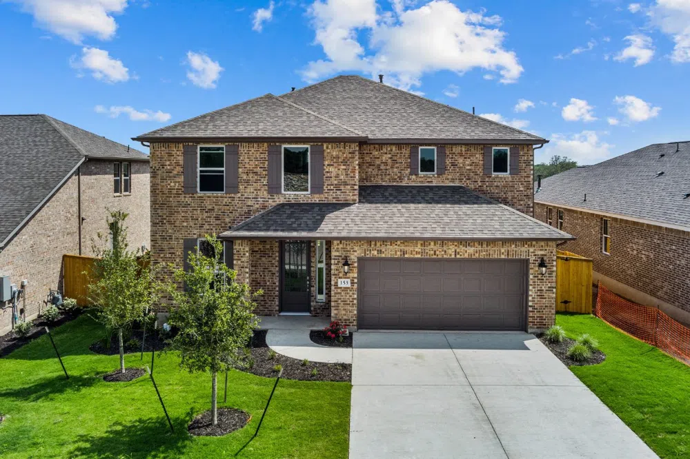 REPRESENTATIVE PHOTOS. Ready Now - The beautiful Terracotta is the perfect two story family home. As you step into the foyer from the porch, you get invited into a large family room with a gorgeous open island kitchen and a casual dining area. Then transition to the secluded owner's suite with beautiful windows and large walk-in closet. The second floor opens to below in the family room and foyer. Show off with a humongous game room and 3 generous-sized secondary bedrooms with two bathrooms. Structural options added to 153 Milam Creek include: gourmet kitchen two, alternate foyer layout, study, split vanities and mud set shower at owner’s bath, extended owner’s suite with bay window, covered outdoor living and casual dining, shower at bath three.