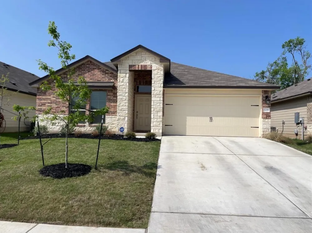 Charming 3-Bedroom, 2-Bathroom Smart Home in The Grove at Bull Creek, Taylor, TX. This thoughtfully designed home offers a spacious open-concept layout, enhanced by 9-foot ceilings that create an airy and welcoming atmosphere. The modern kitchen is a chef's delight, featuring a generous island, stainless steel appliances, and elegant granite countertops, seamlessly flowing into a separate dining area and the family room. The primary suite serves as a tranquil retreat, complete with a walk-in shower, dual vanities, and an expansive walk-in closet. Throughout the home, ample storage solutions cater to your organizational needs. Step outside to discover a sizable, private backyard enclosed by a fence, offering a perfect setting for entertaining guests or enjoying peaceful solitude. Notably, the property backs up to open space, ensuring added privacy. This home is equipped with solar panels, significantly reducing electricity costs, and features front and back sprinkler systems for easy lawn maintenance. The Grove at Bull Creek community enhances your lifestyle with amenities such as a new playground and walking trails, promoting outdoor activities and family fun. For your convenience, the home includes a refrigerator, washer, and dryer, making it move-in ready.