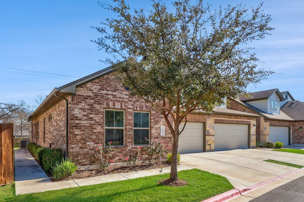 Welcome to Unit 581 in the Arbors at Lakeline! This lock-and-leave property was recently owner-occupied and meticulously maintained! The unit is a corner unit with a private side entrance and lovely green space behind the gated mini-yard and patio. Lawn mowing is covered around the unit by the association- owner to pay association dues and the water bill! This 2017 unit lives like a brand-new home and includes washer, dryer, and refrigerator with the lease. Features include an open concept, 2-car-garage, spacious owner’s retreat backing to green space, and upgraded gas range/convection oven, and beautiful wood-look tile throughout. No carpet! Be sure to check-out the floor plan in MLS! (2 car attached garage not depicted on plan). Conveniently located to 183, 620, and 45 tolls, shopping centers, grocery stores, restaurants, and entertainment! A low-maintenance unit in an incredible location — a must see!