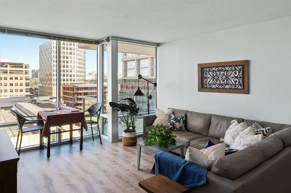 *Furniture in condo is negotiable with sale. Inquire for further details.* Live in the heart of the Market District at Spring Condominiums, where luxury meets convenience. Condo features: Spacious living area and open floor plan. Updated kitchen with ample counter and cabinet storage and beautiful backsplash. Large bedroom with walk in closet opens to private balcony. Modern bathroom with shower/tub and laundry in utility closet. Entire unit flooded with natural light through floor to ceiling windows. North facing, keeping temperatures cool in the Summer, with views towards the Capital and East from the private balcony towards Downtown. Meticulously maintained by owner - upgrades include luxury vinyl flooring, intelligent storage solutions, and custom built-ins in the pantry and primary closet. Includes 1 secured covered parking space. Luxury building amenities include: 75-foot resort-style rooftop pool with outdoor lounging and grilling areas for breathtaking sunset views. Owners' lounge, equipped with a kitchen, private dining room, and library. Newly renovated fitness center on site, or head to the state-of-the-art Lifetime Fitness located on the same block. Guest suites available in the building for reservation, providing overnight accommodations for visitors. 24-hour concierge staff - the most friendly staff in all of Austin to welcome you home every day. Secured access to the amenity area and parking garage. Active Homeowners Association (HOA) just completed hallway renovations and updated elevator cabs. Enjoy the convenience of walking or biking to all of Austin’s favorite destinations. Spring is within blocks of Whole Foods, Trader Joe's, Ladybird Lake, Butler Hike-N-Bike Trails, and all downtown shopping, dining, and entertainment options.